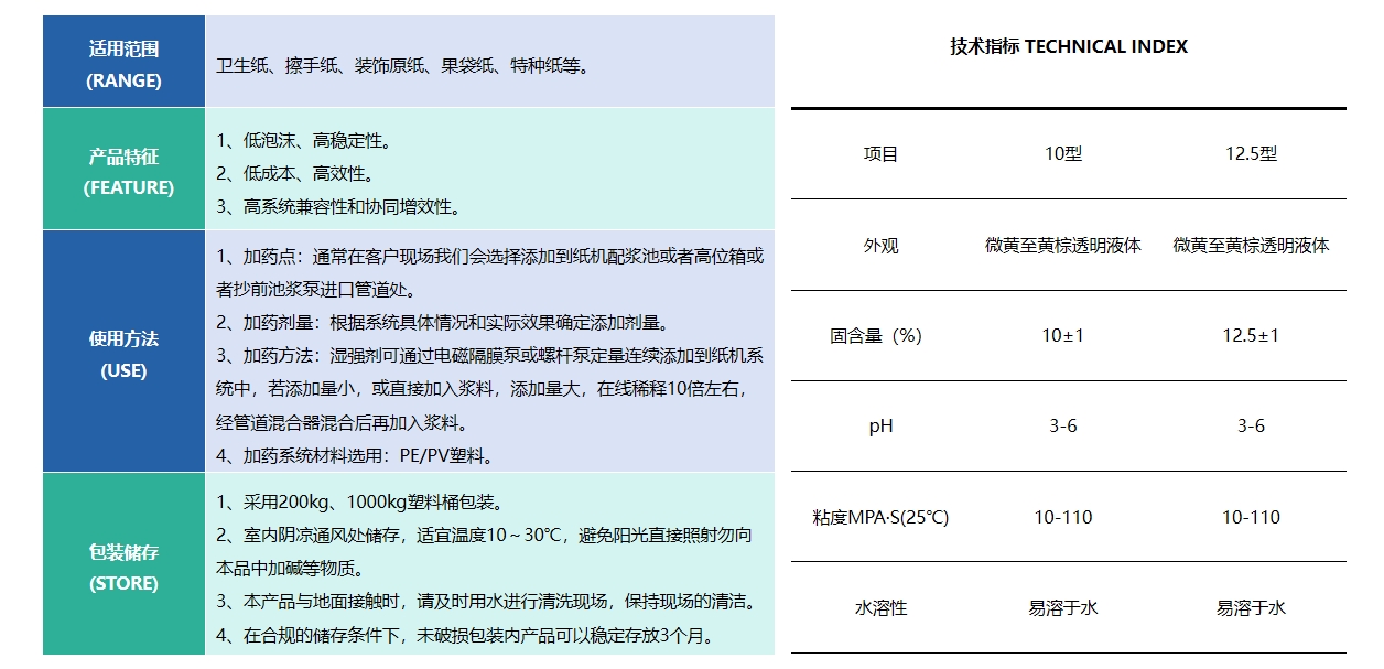 HQ-SN868 濕強劑,是一種陽離子聚多胺酰胺環氧氯丙烷?脂,本品不但具有較好的濕強效果,而且環境污染小,無毒害作用。與傳統MF樹脂和UF樹脂相比,它不僅可以在中堿性條件下熟化,而且在提高紙張濕強度的同時,并不會損失紙張的柔軟性、吸收性,特別是生活用紙。